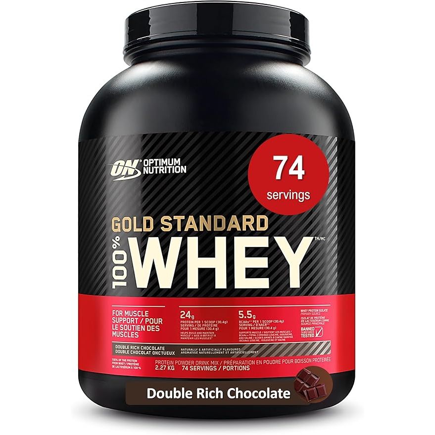 Optimum Nutrition Gold Standard 100% Whey Protein Powder, 2.270g - Double Rich Chocolate - 74 servings (packaging may vary)